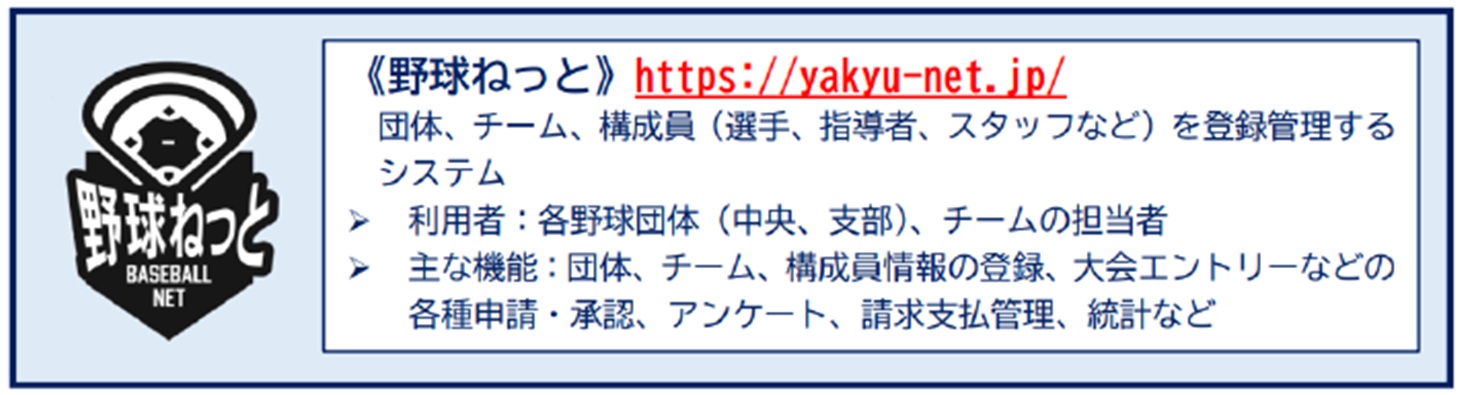 ● 野球競技者登録システム「野球ねっと」操作マニュアルを掲載しました。